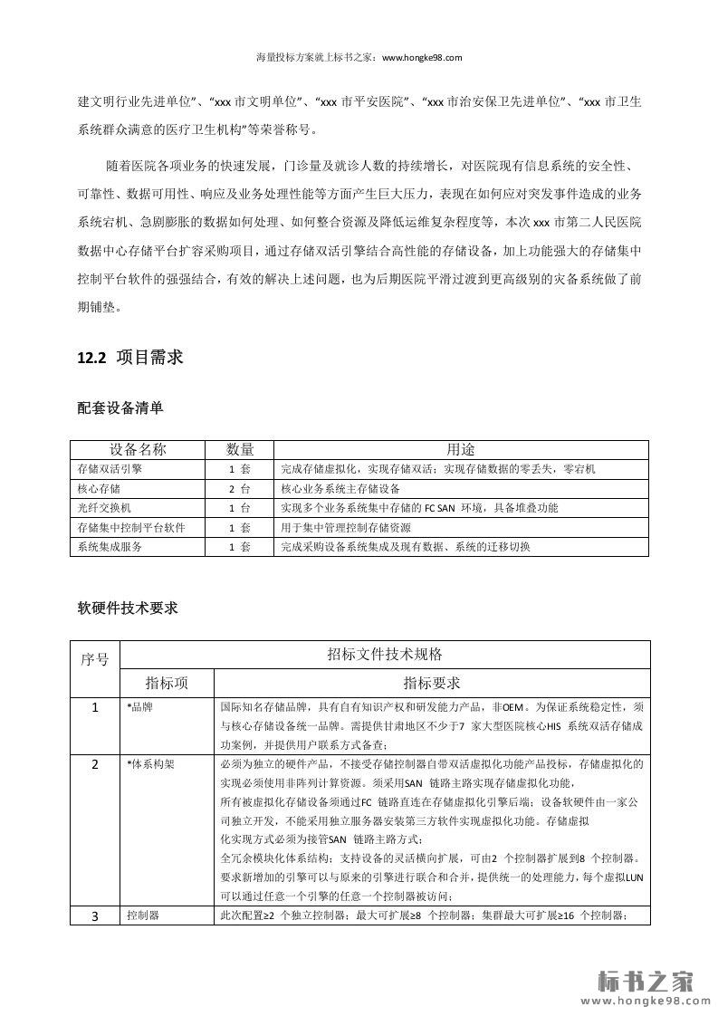 标题:医院数据中心存储平台扩容采购项目投标书技术方案(89页)