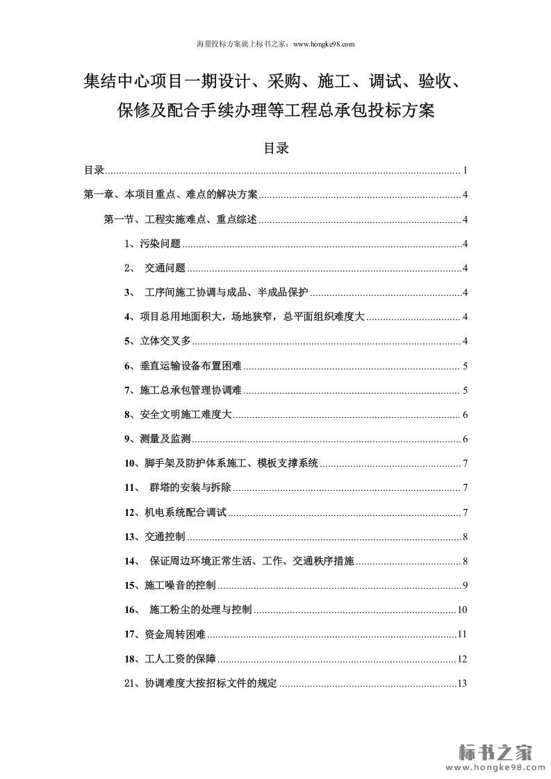 标题:集结中心项目设计、采购、施工、调试、验收、保修及配合手续办理等工程总承包投标方案(111页)