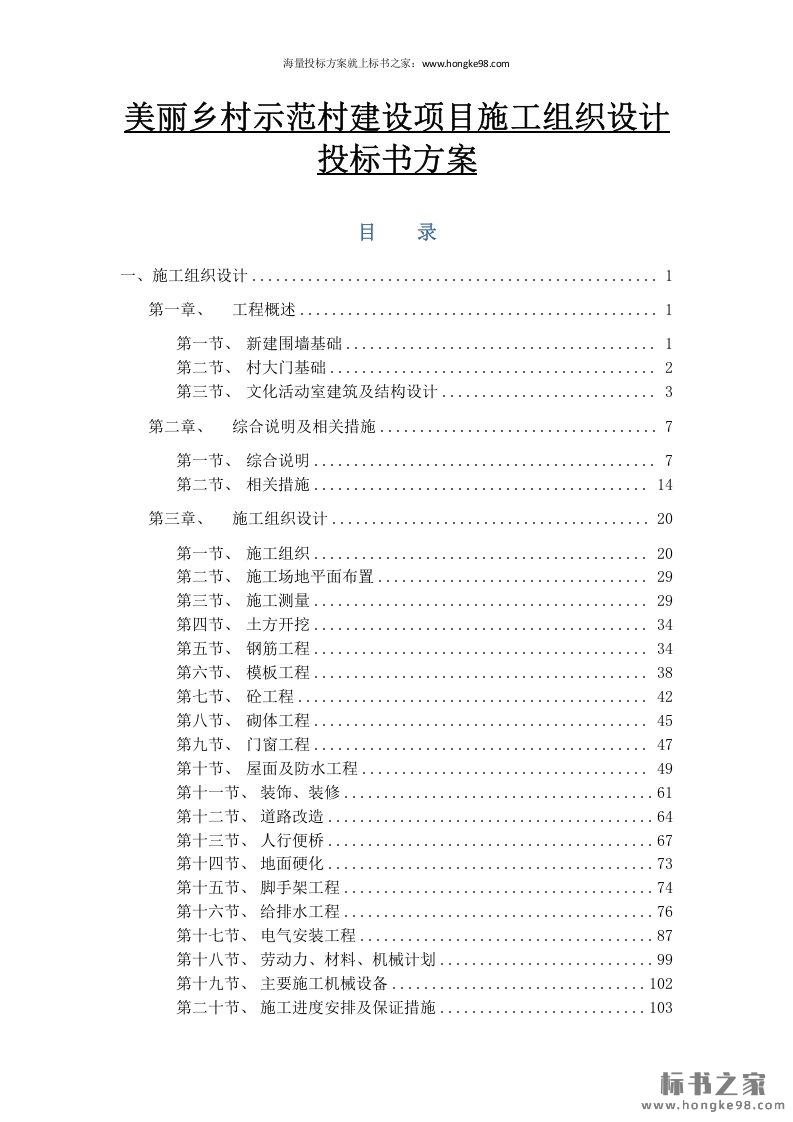 标题:美丽乡村示范村建设项目施工组织设计投标书方案(153页)