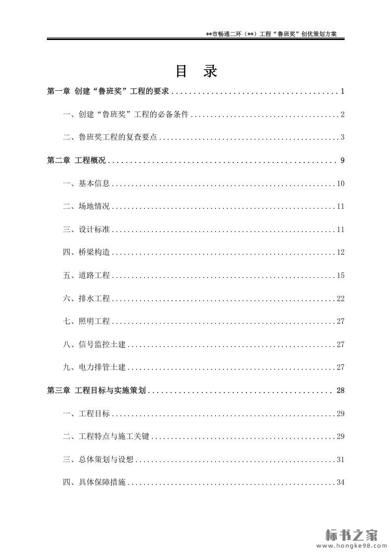 标题:公路工程“鲁班奖”创优策划方案投标文件(118页)