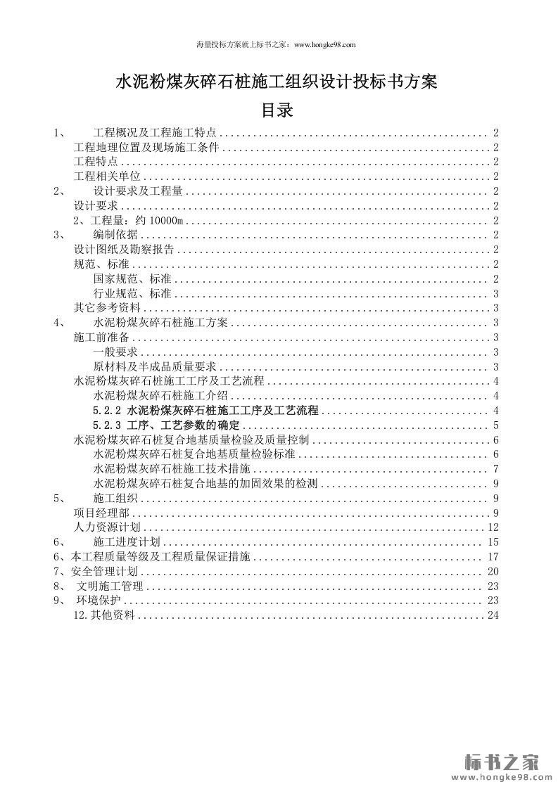 标题:水泥粉煤灰碎石桩施工组织设计投标书方案(24页)