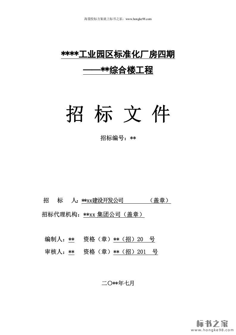 标题:标准化厂房综合楼工程招标文件(96页)