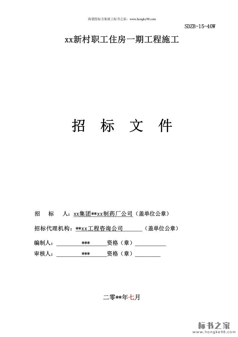 标题:职工住房工程施工招标文件(126页)