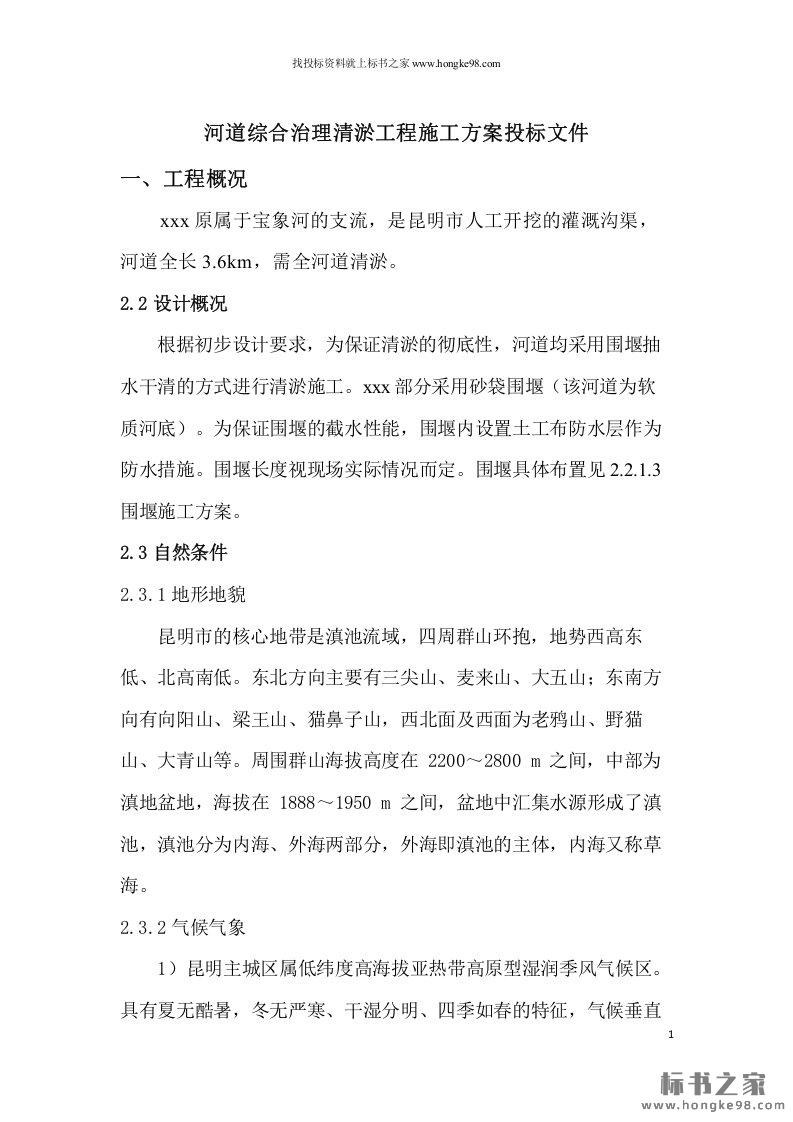 标题:河道综合治理清淤工程施工方案投标文件(28页)