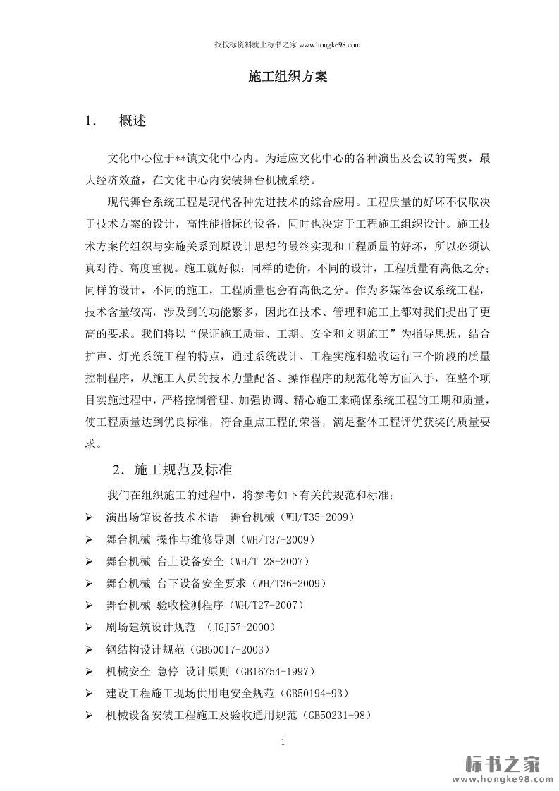 标题:舞台机械、灯光、音响专项施工投标方案(33页)