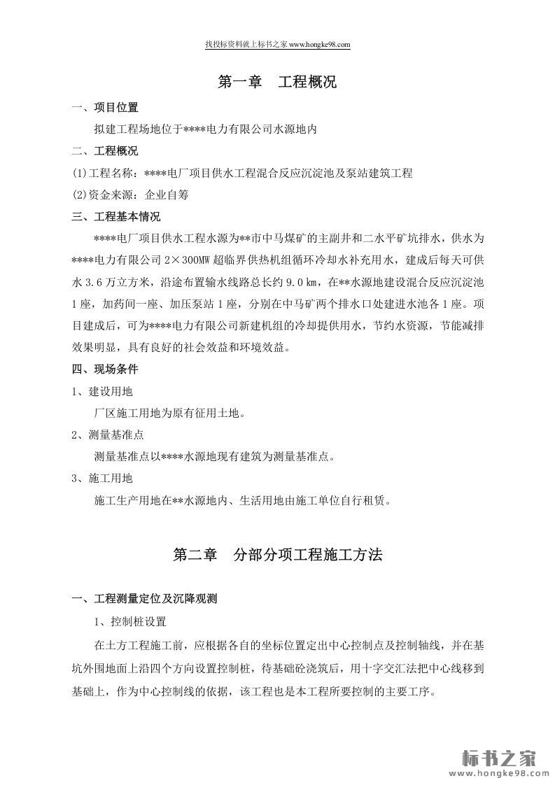 标题:某水池泵站土建施工组织设计投标方案(48页)