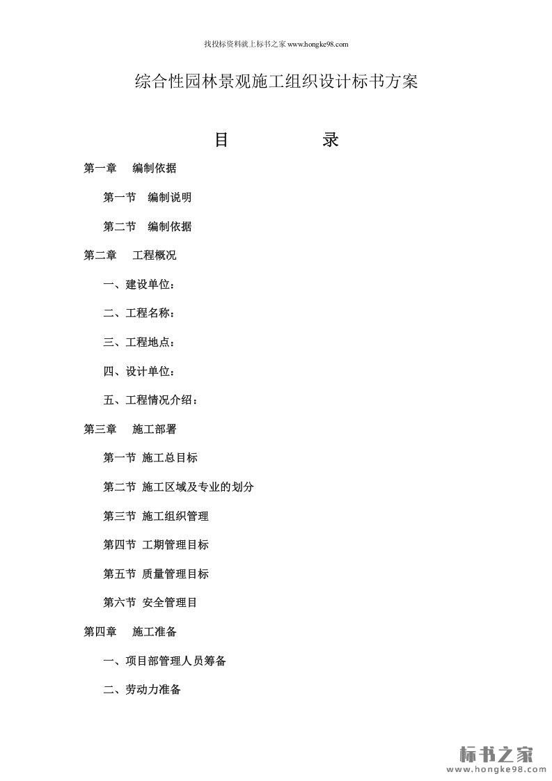 标题:综合性园林景观施工组织设计标书方案(90页)