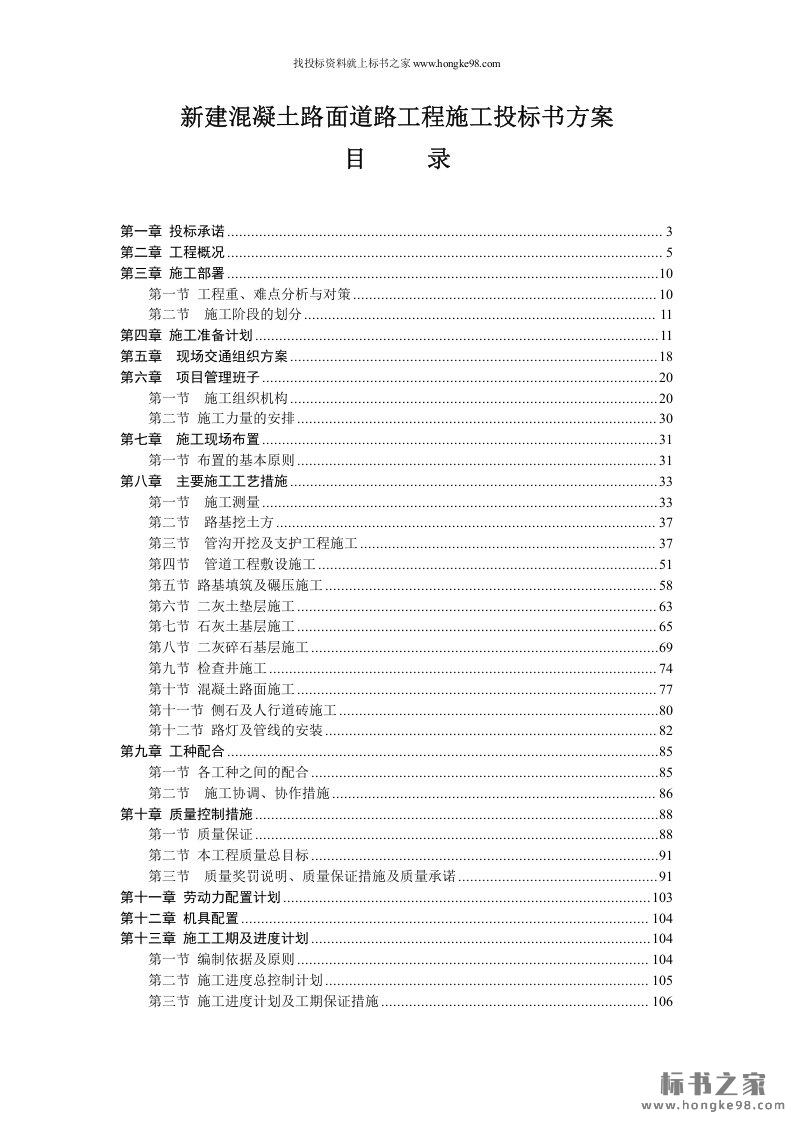 标题:新建混凝土路面道路工程施工投标书方案(155页)