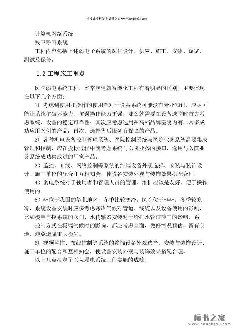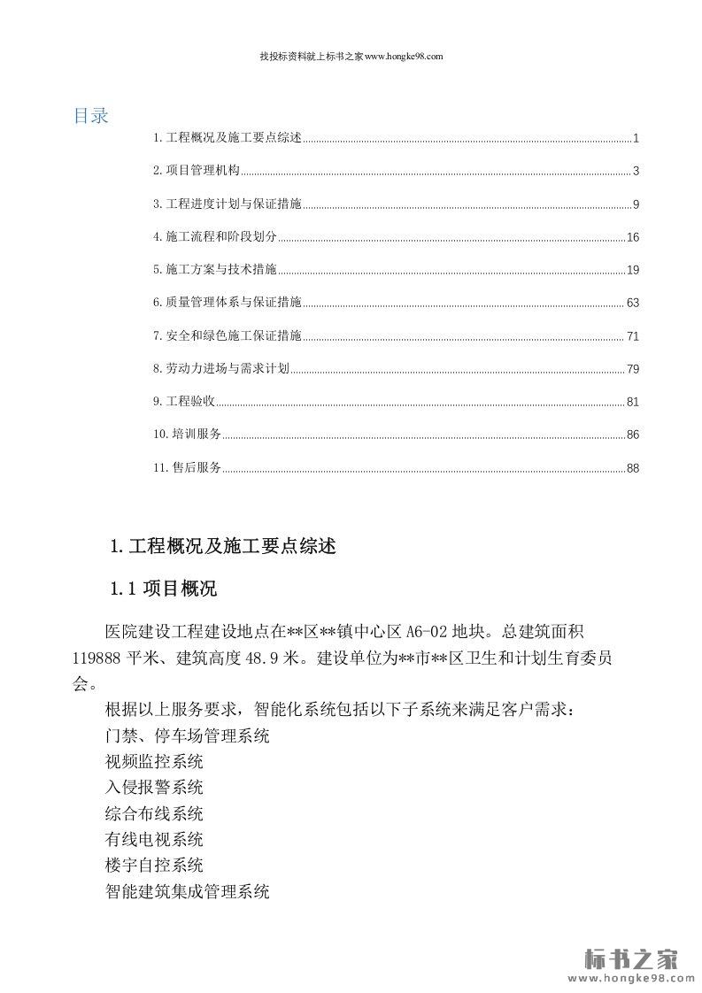 标题:医院弱电工程投标文件施工组织方案范本(完整版)(79页)