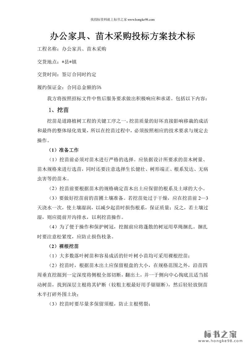 标题:办公家具、苗木采购投标方案技术标(18页)