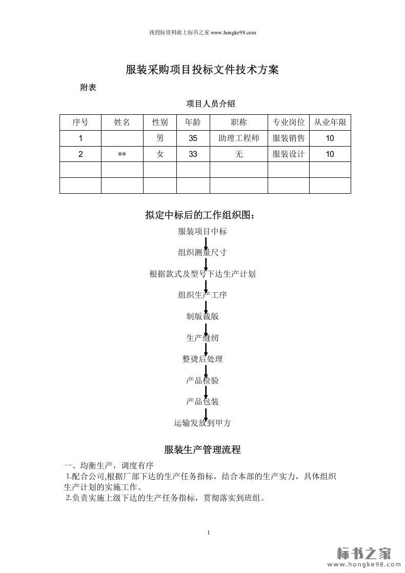 标题:服装采购项目投标文件技术方案(6页)
