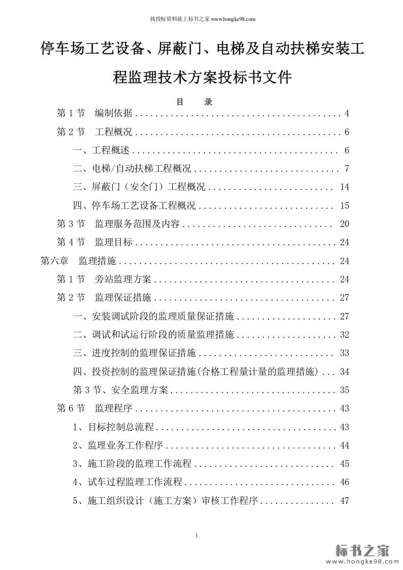 标题:停车场工艺设备、屏蔽门、电梯及自动扶梯安装工程监理项目技术方案投标文件(89页)