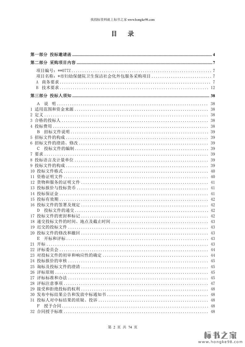 标题:保洁外包服务招标文件(74页)