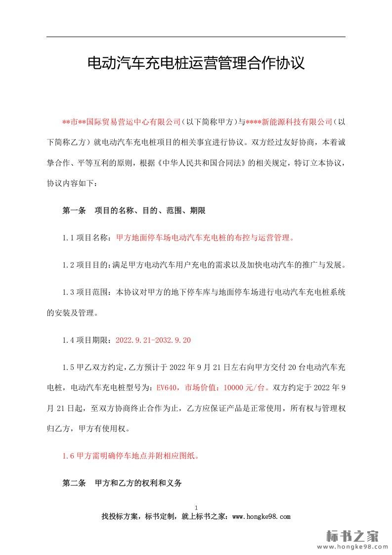 标题:电动汽车充电桩运营管理合作协议(7页)