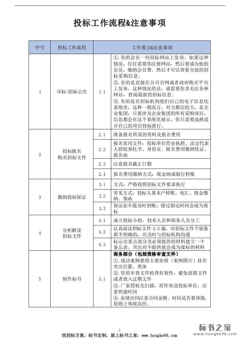 标题:投标流程步骤表&注意事项(5页)