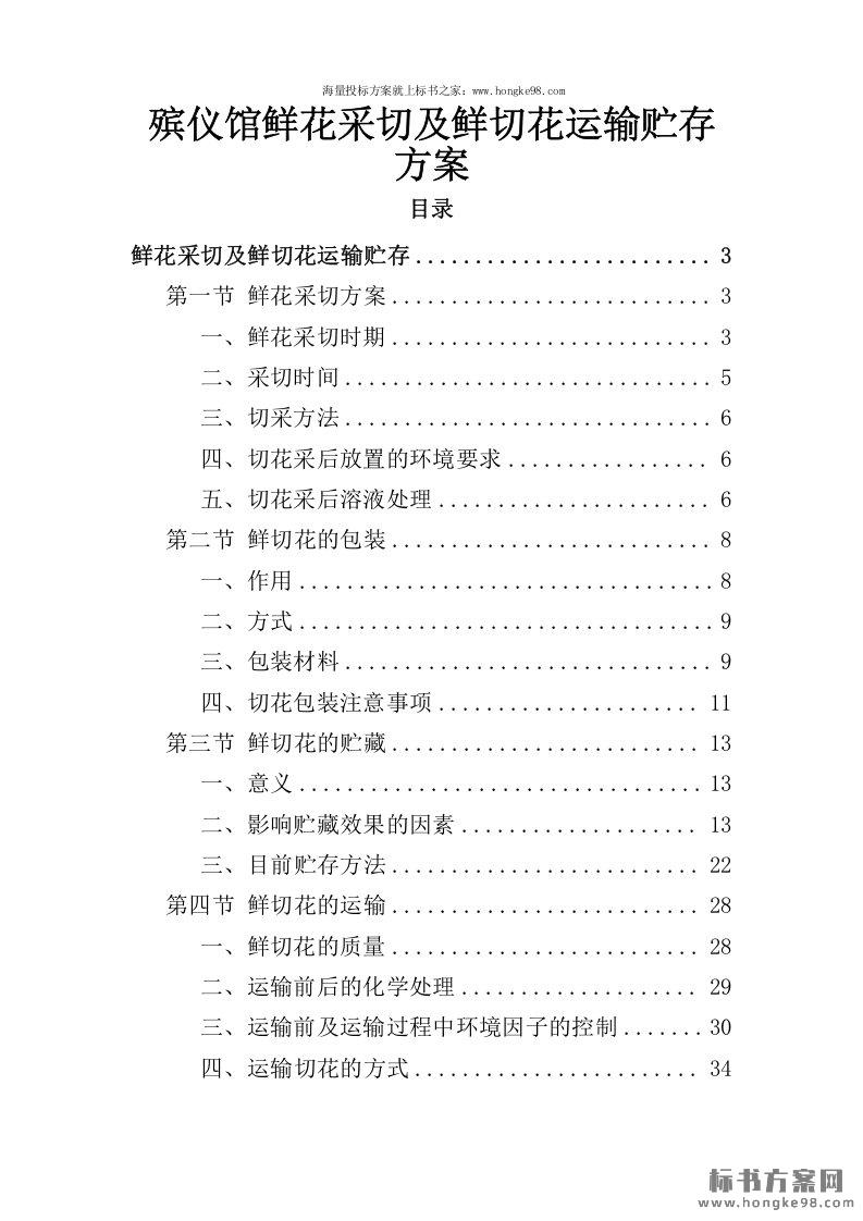 标题:殡仪馆鲜花采切及鲜切花运输贮存方案(37页)