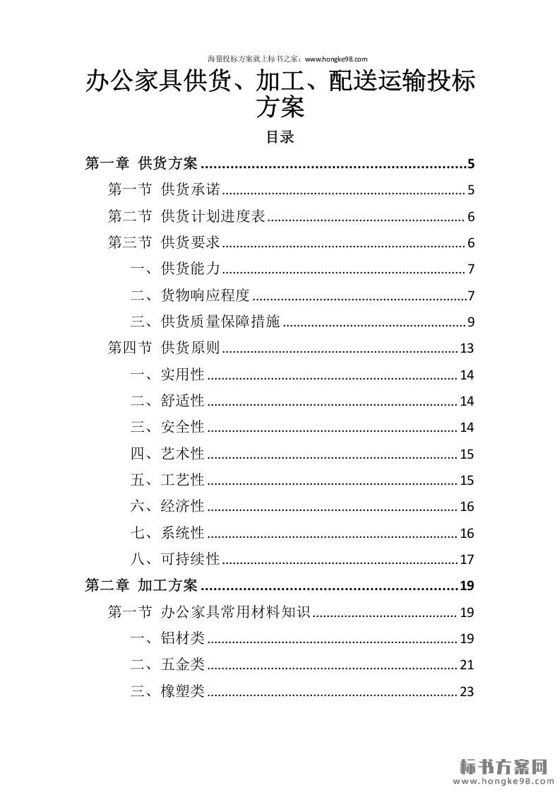 标题:办公家具供货、加工、配送运输投标方案(95页)