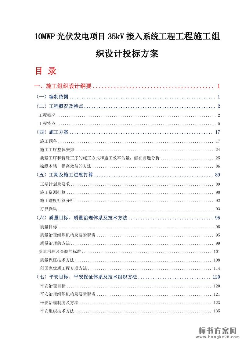 标题:10MWP光伏发电项目35kV接入系统工程工程施工组织设计(163页)