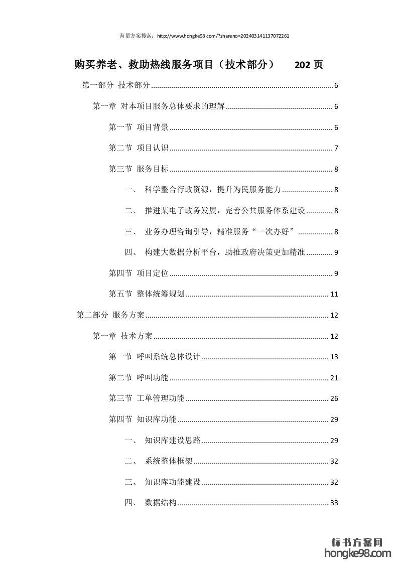标题:购买养老、救助热线服务项目技术投标方案(201页)
