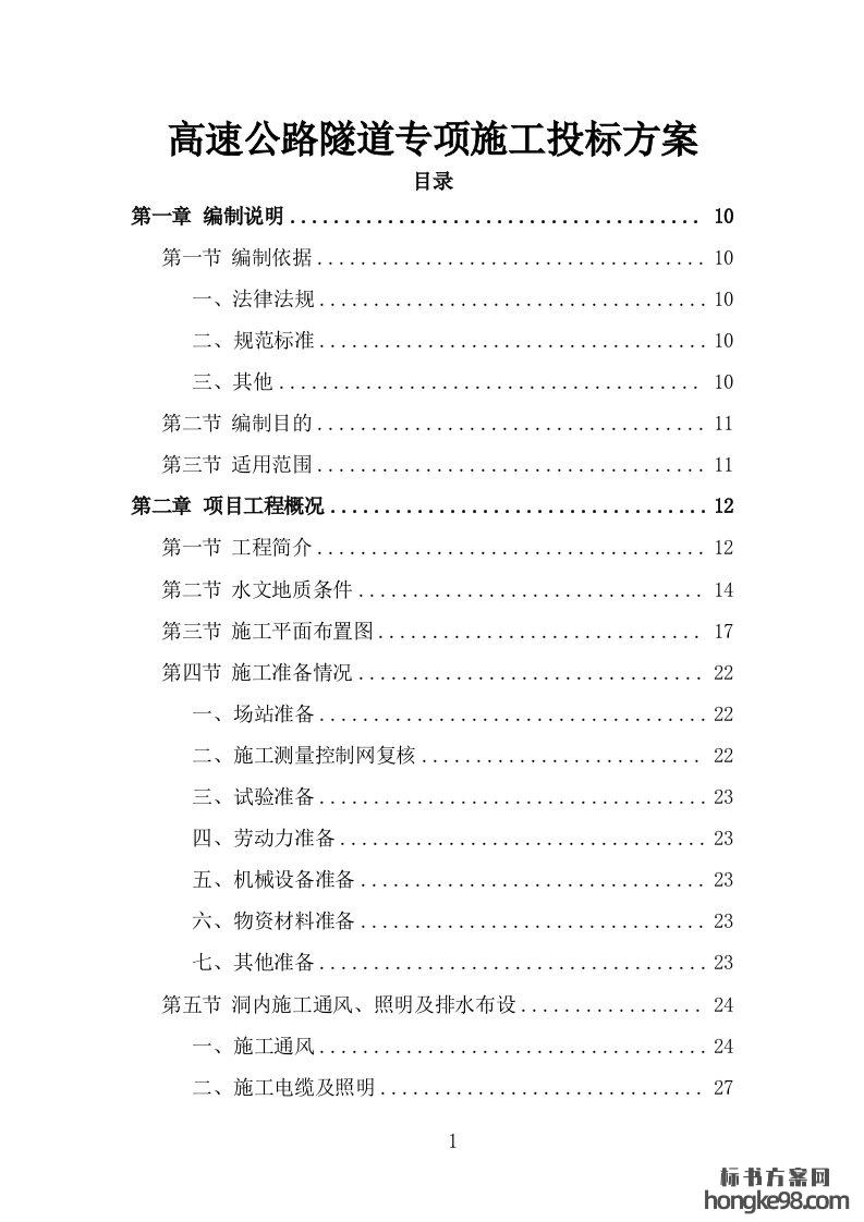 标题:高速公路隧道专项施工投标方案311页