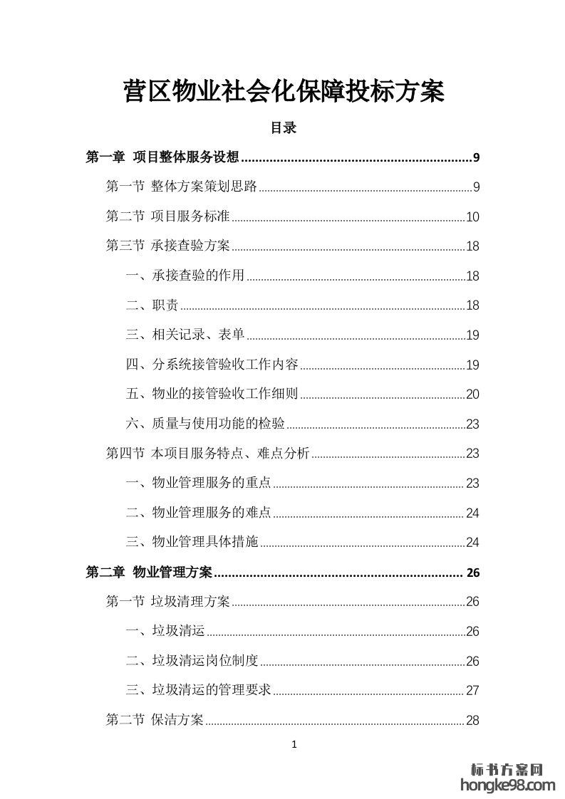 标题:营区物业社会化保障投标方案313页