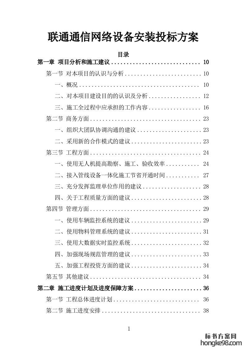标题:联通通信网络设备安装投标方案321页