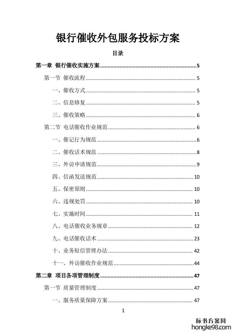 标题:银行催收外包服务投标方案167页