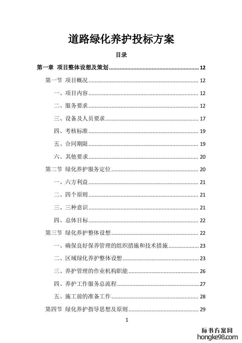标题:道路绿化养护投标方案421页