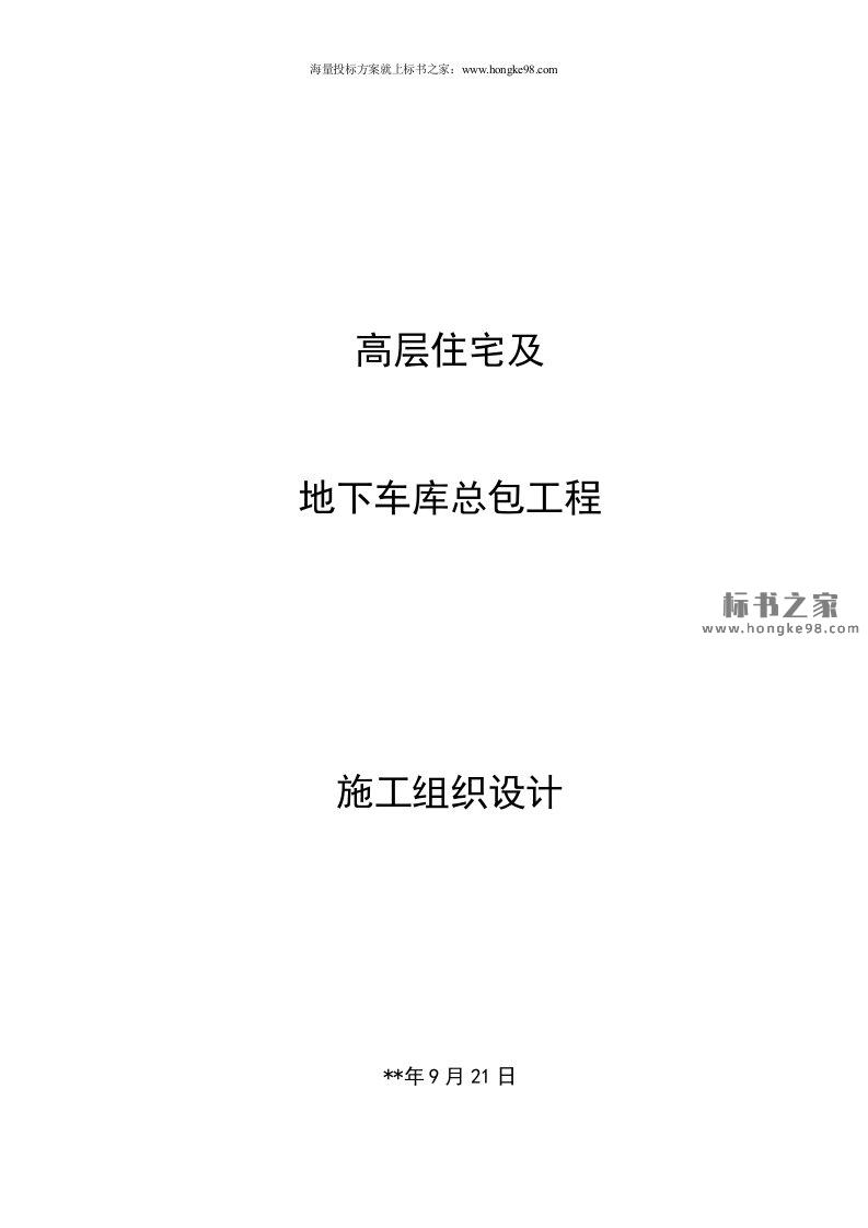 标题:高层住宅及地下车库总包工程施工组织设计方案(222页)
