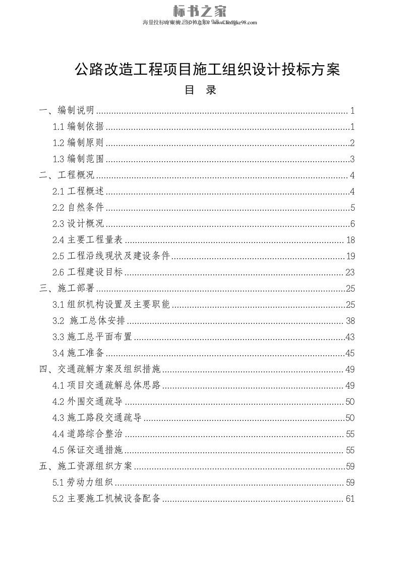 标题:公路改造工程项目施工组织设计投标方案(271页)