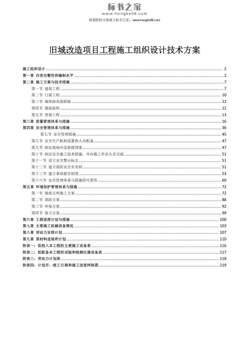 标题:旧城改造项目工程施工组织设计投标技术方案(120页)