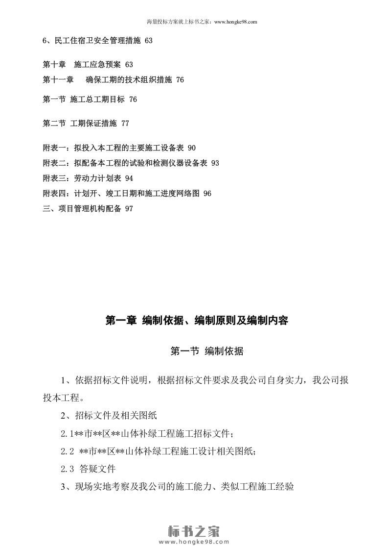 标题:山体补绿工程施工组织设计投标书方案(96页)
