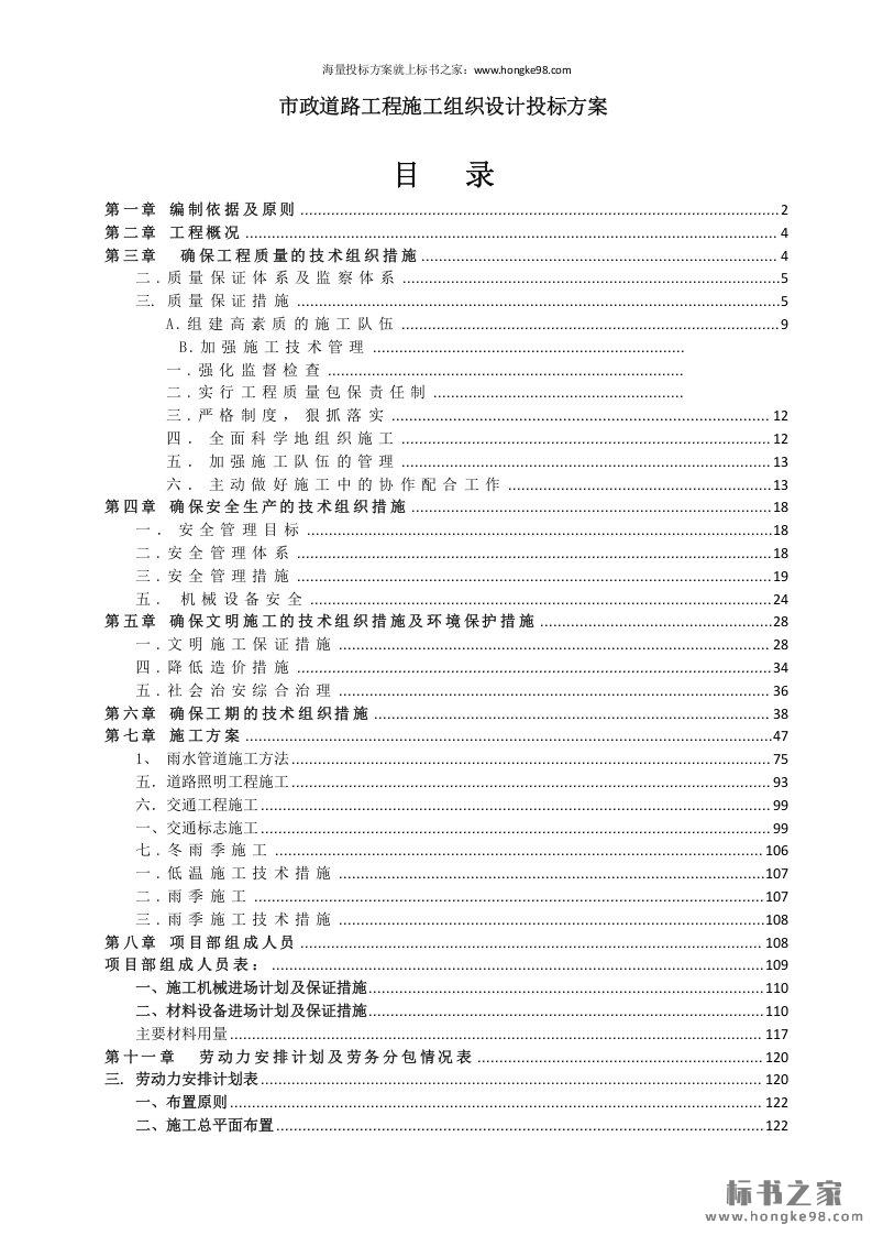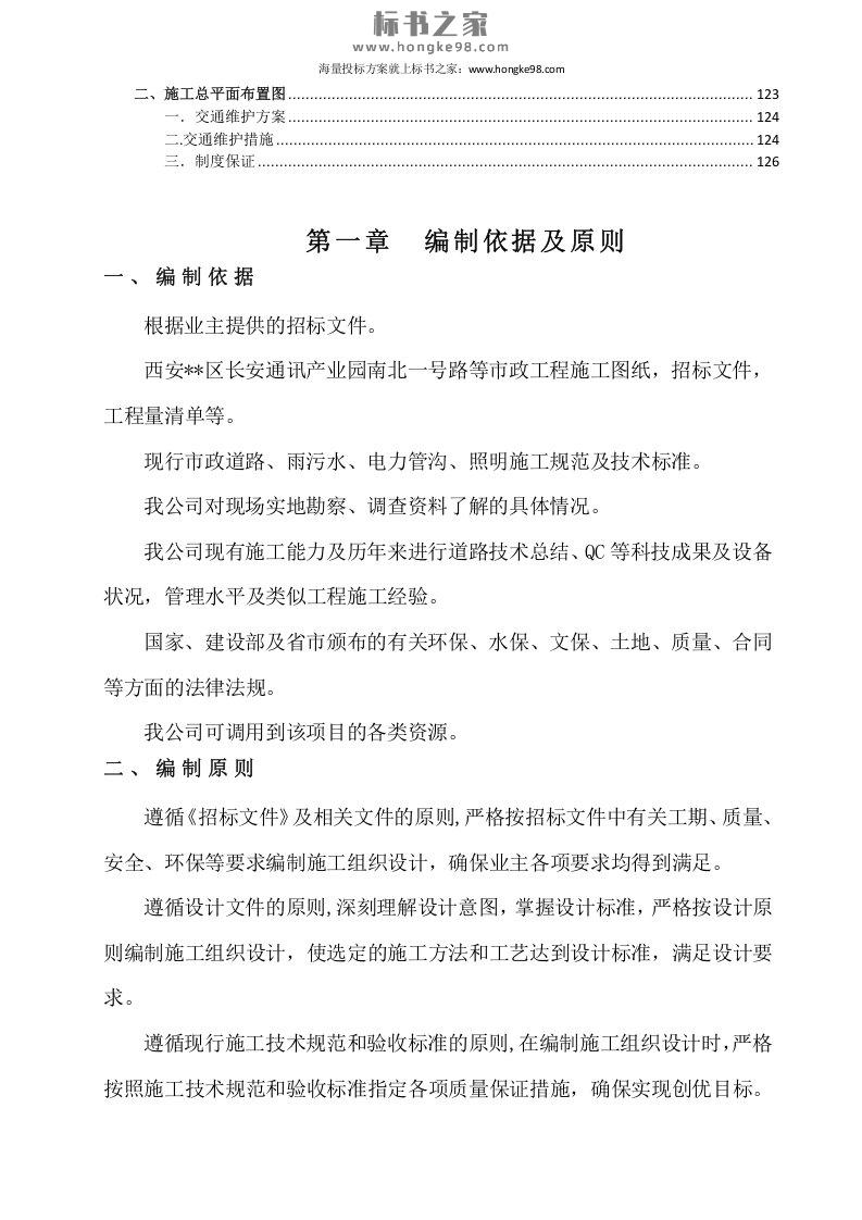标题:市政道路工程施工组织设计投标书技术方案(129页)