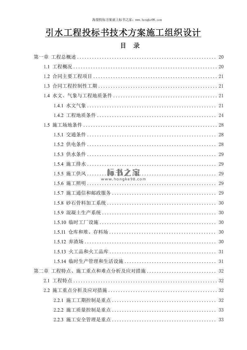 标题:引水工程投标书技术方案施工组织设计(397页)