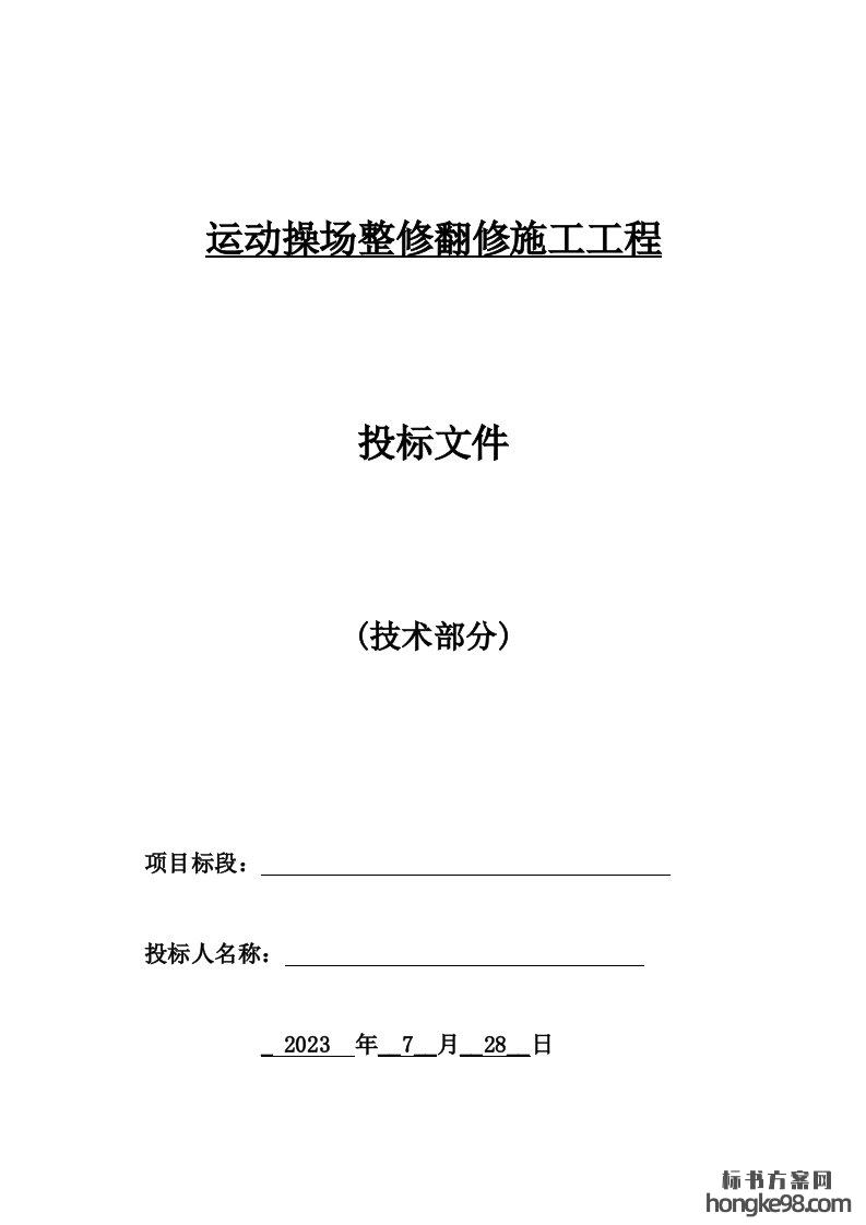 标题:运动操场整修翻修施工工程投标方案(241页)