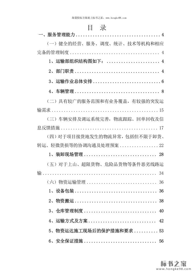 标题:公路运输、货物、物资运输服务方案(102页)