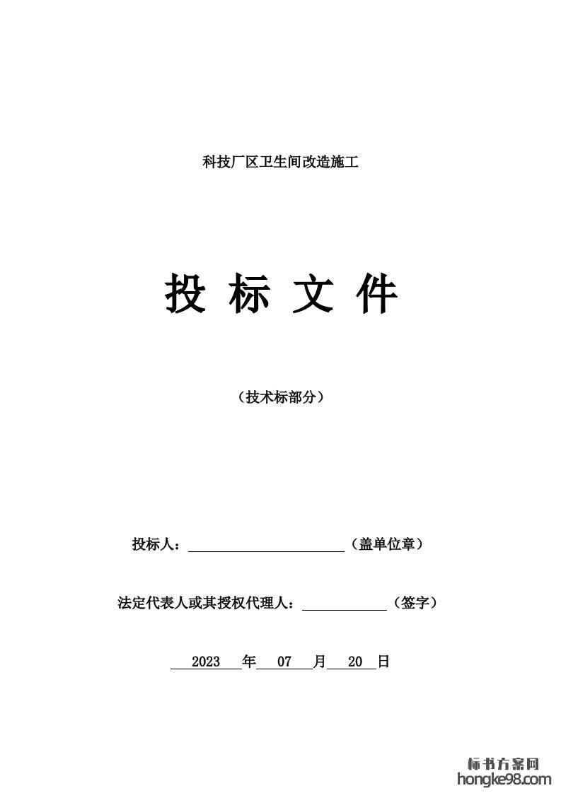 标题:科技厂区卫生间改造施工投标方案(322页)