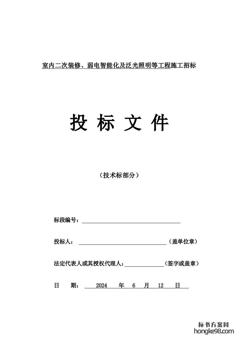 标题:室内二次装修、弱电智能化及泛光照明等工程投标方案(307页)