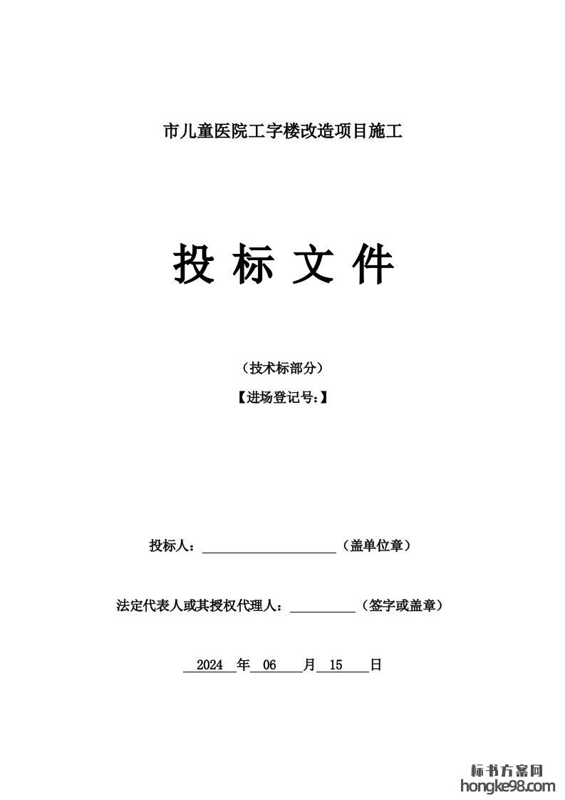 标题:儿童医院工字楼改造项目施工投标方案(322页)