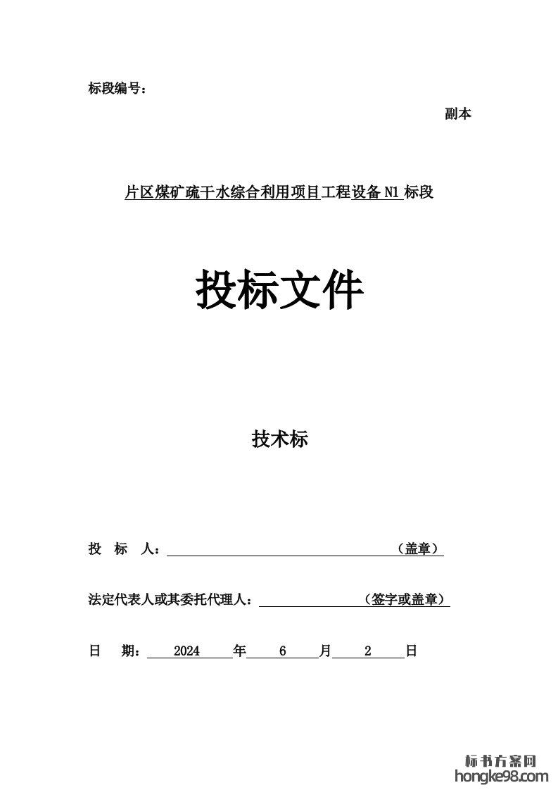 标题:片区煤矿疏干水综合利用项目设备N1 标段投标方案(321页)
