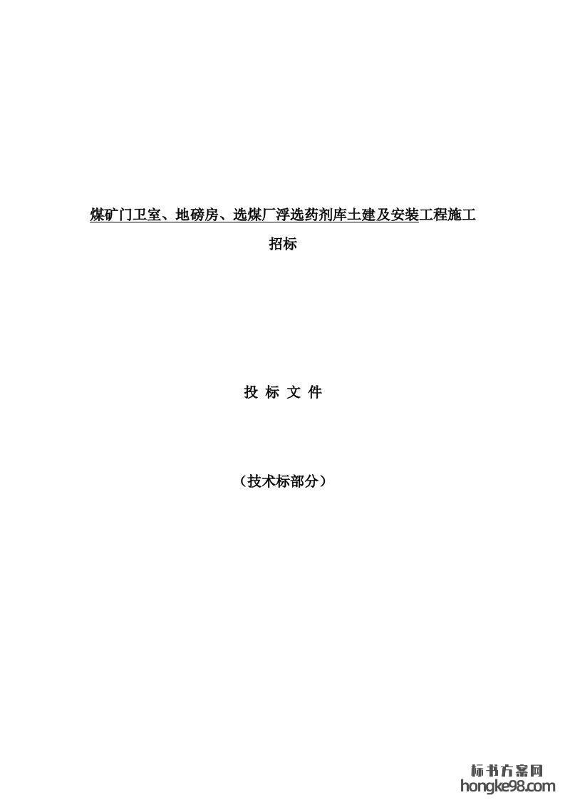 标题:煤矿门卫室、地磅房、选煤厂浮选药剂库土建及安装工程(348页)