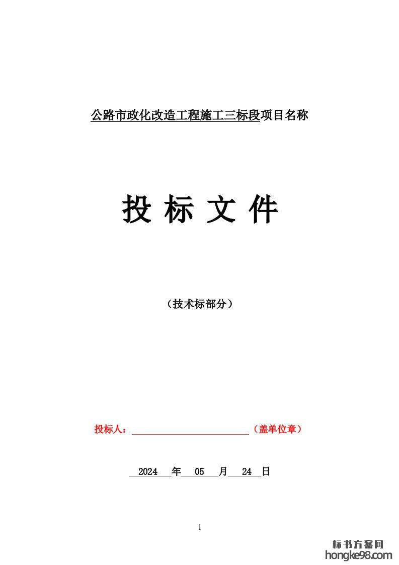 标题:公路市政化改造工程施工投标方案(484页)