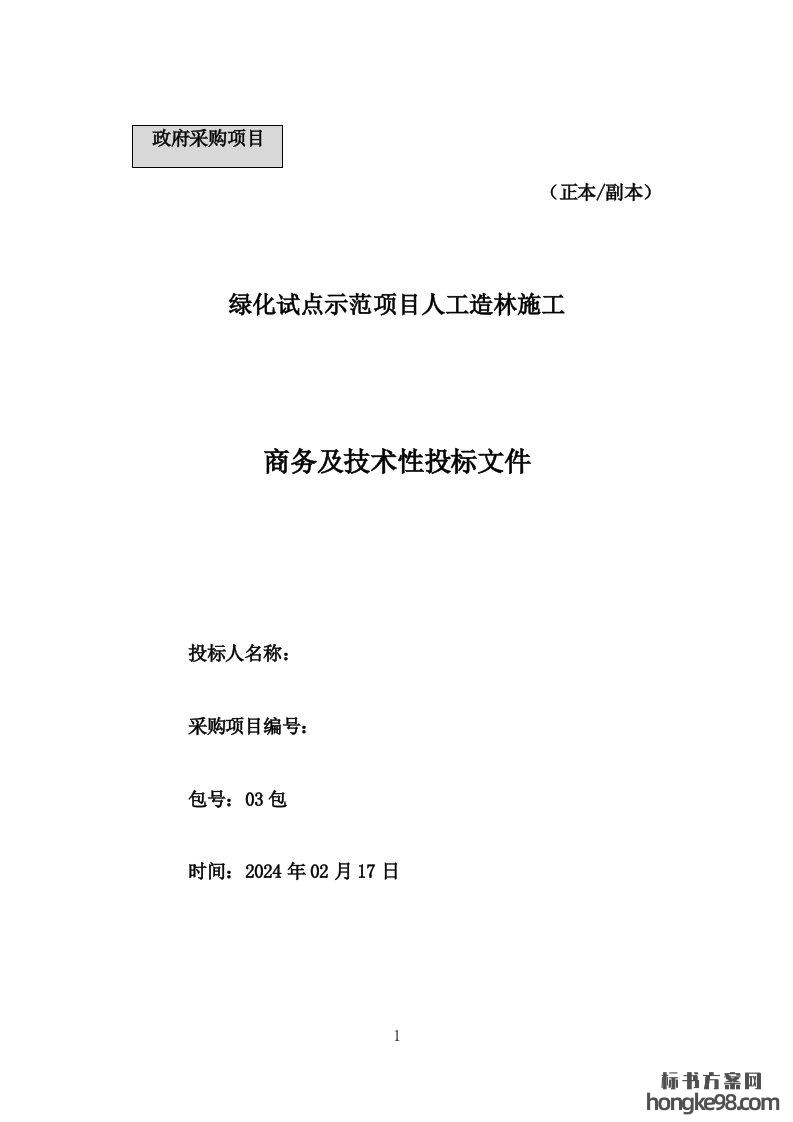 标题:绿化试点示范项目人工造林施工投标方案(267页)