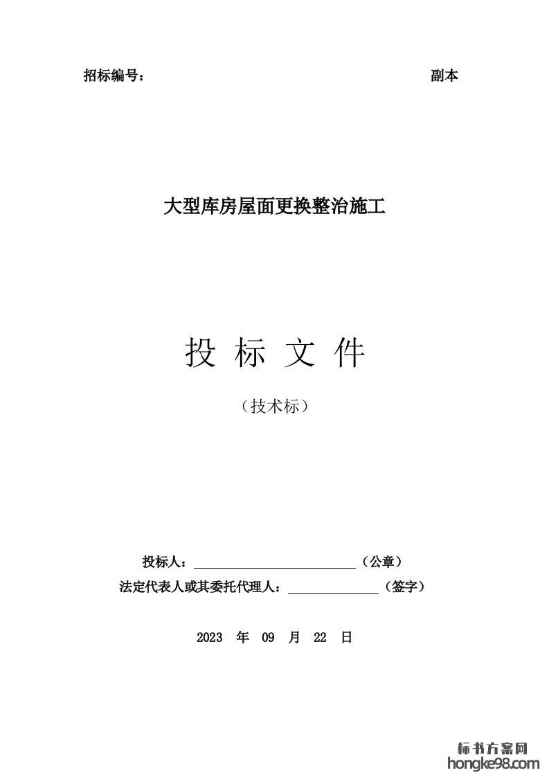 标题:大型库房屋面更换整治施工投标方案(193页)