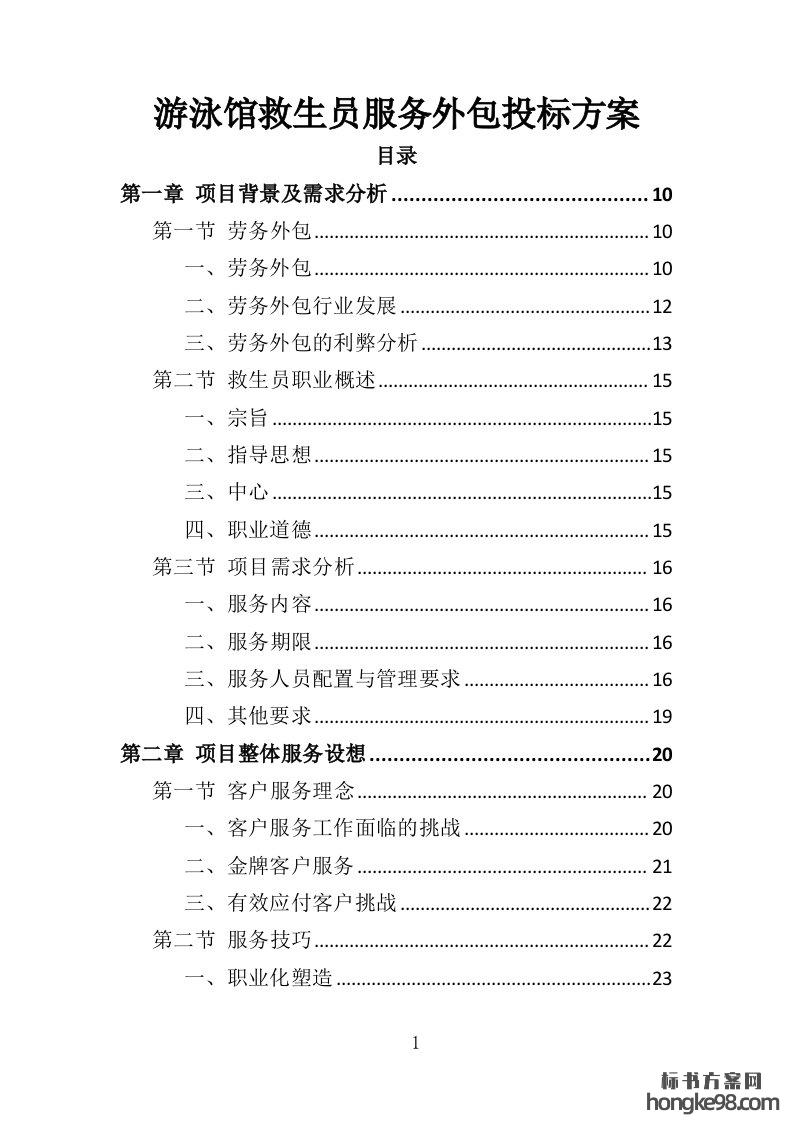 标题:游泳馆救生员服务外包投标方案350页