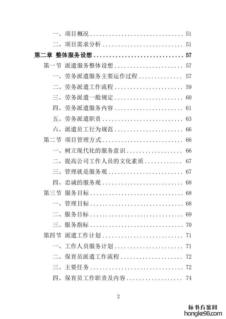 标题:幼儿保育员劳务派遣投标方案398页