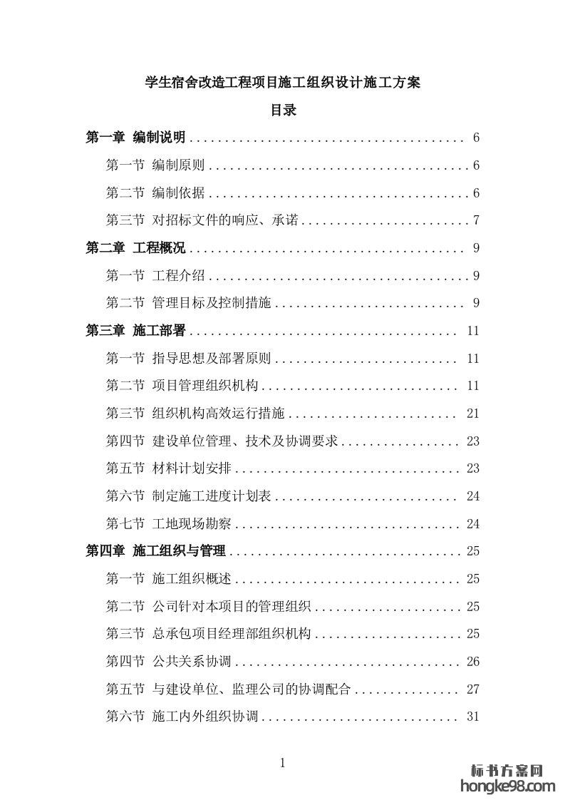 标题:学生宿舍改造工程施工组织设计投标方案649页