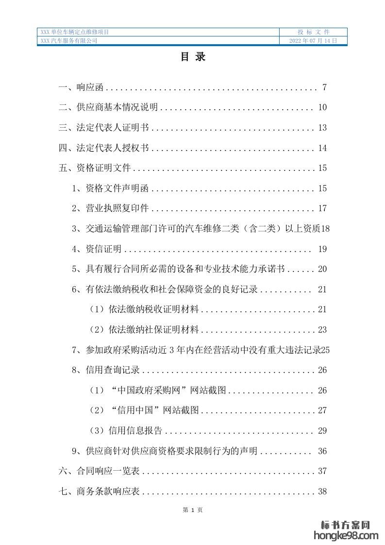 标题:车辆定点维修车辆保养车辆服务投标方案424页
