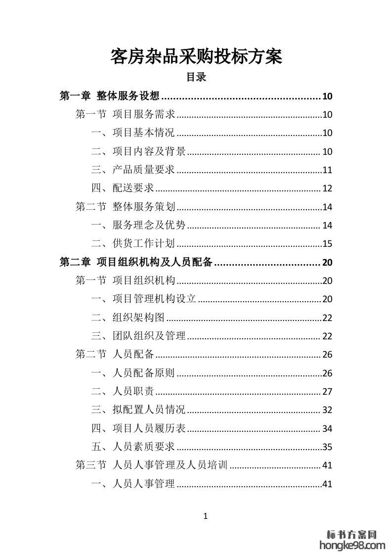 标题:客房杂品采购投标方案370页