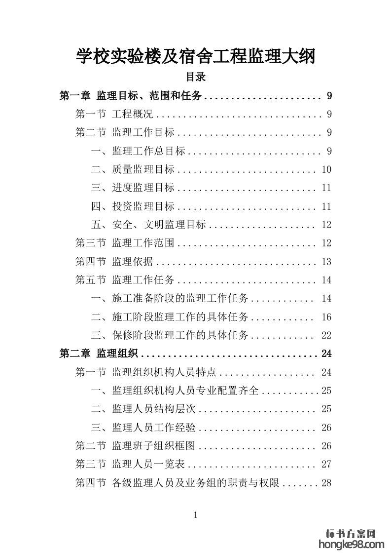 标题:学校(校园)实验楼及宿舍工程监理大纲190页